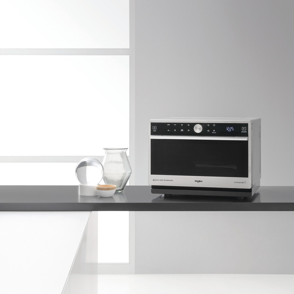 Denne frittstående mikrobølgeovnen fra Whirlpool har følgende funksjoner: enestående stor plass inni. Kombinasjonsteknologi som gir de samme matlagingsmulighetene som tradisjonelle ovner. 6TH SENSE autoprogram for oppvarming og tilberedning, gjør det enkelt å tilberede mat med perfekt resultat. Crisp-funksjon, for utrolig sprø quiche, pizza og paier. Jet Defrost, superrask og jevn opptiningsfunksjon.